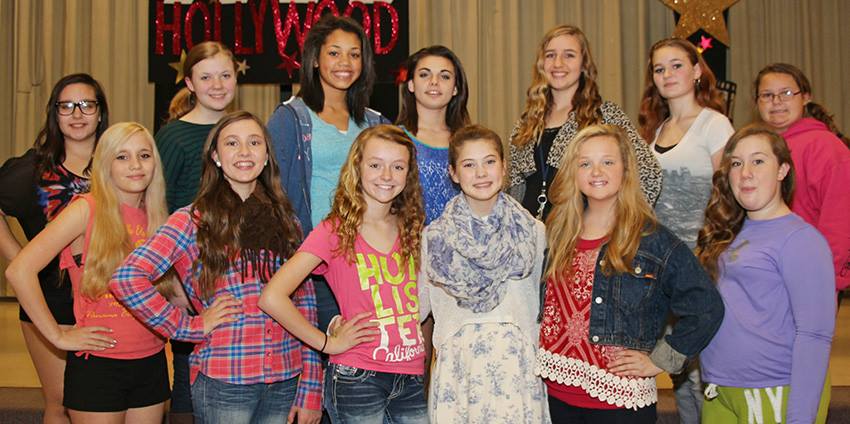 Seventh grade contestants, pictured below, are (L-R, front) Katelyn Hassebrock, Ashlan Harigel, Payton Jackson, Jayda Crabtree, Cloe Smith, Bailey Seibert, (back) Madison Jogan, Raleigh Woodfin, Teriana Redmond, Destiny Cleckler, Lauren Ahern, Kelley Bradley and Savannah Steadham.