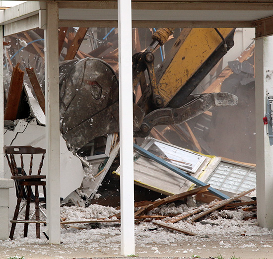 The remainder of the old school is expected to be demolished by Friday afternoon, with work next week to haul off the debris. Most of the area will become a parking lot. Students moved into their new $20 million state of the art Ernest Ward Middle School, located behind the old school, the first week of February.