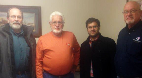 Godwin (pictured second from left) was joined for the signing by (L-R) David Mrozinski, Lav Bajaj and John Kolasky of Bajaj Steel Industries, LLC, manufacturers of the Continental press.
