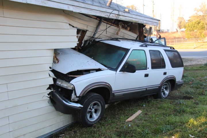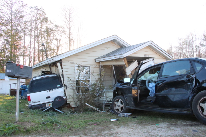 According to the Florida Highway Patrol, 49-year old Madonnna Schaniel of Atmore then struck a Chevrolet Blazer parked next to the house, sending the SUV through a living room wall. The car then struck the front of the house.