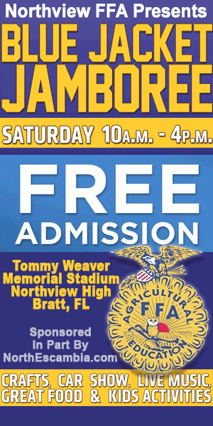 All proceeds from the event benefit the Northview High School FFA and FFA Scholarship Fund. The Blue Jacket Jamboree is sponsored in part by NorthEscambia.com.