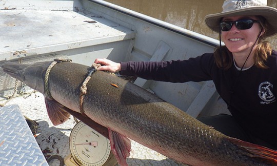 Three years into the study, researchers have tagged 22 alligator gar ranging from 11 pounds to a state record 132 pounds; tagged fish average 60 pounds. Researchers are trying to identify what habitats these fish prefer, how far they travel and whether they return to the same location over time. Preliminary tracking data indicate alligator gar are highly mobile and can travel more than 40 miles in a single week.