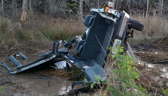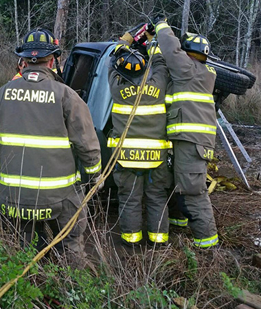 The Florida Highway Patrol said 33-year old Chad Benson apparently lost control of his 1996 Ford Explorer, ran off the roadway, and the vehicle overturned. Benson was trapped, requiring an extensive extrication by firefighters from the Beulah, Bellview and Ensley stations of Escambia Fire Rescue.