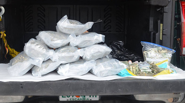 The Escambia County Sheriff’s Office seized several pounds of pot and thousands in cash following a weekend traffic stop.