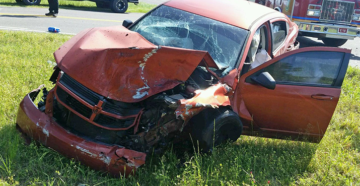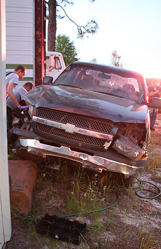 Pictured: Two people were injured in this tw0-vehicle crash on Highway 29 at Barrineau Park Road Saturday afternoon. NorthEscambia.com photos by Kristi Price, click to enlarge.