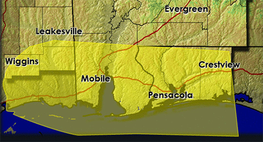 There is a flash flood watch in effect for today. There is also a slight risk of severe storms in the area outlined in yellow above, including most of the North Escambia area. Here is your official North Escambia area forecast: