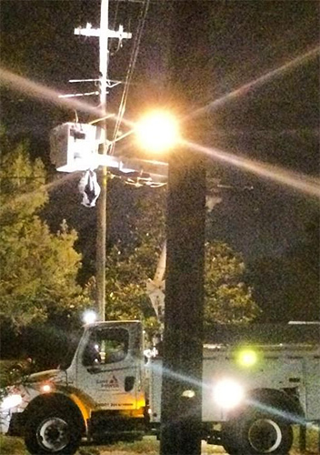 Pictured: Gulf Power crews work to restore power Saturday night. Courtesy photos for NorthEscambia.com, click to enlarge.