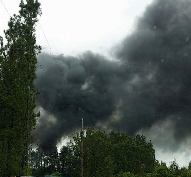 Pictured: Black smoke rises from an oil fire north of Flomaton Saturday morning. Photo for NorthEscambia.com, click to enlarge.