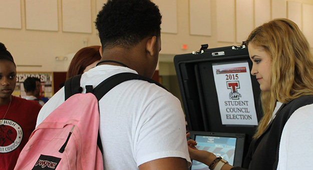 Students at Tate High School got a little real world voting experience Wednesday. They voted for class officers and student council officers during lunch, using real ballots and real voting equipment provided by the Escambia County Supervisor of Elections Office.