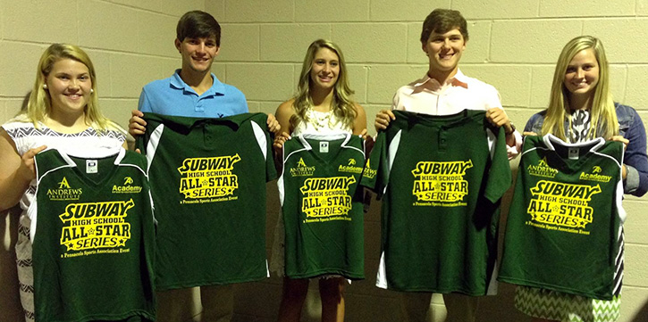 Pictured top: Subway All-Stars from Northview High (L-R) Addy Lee, Chasen Freeman, Angel Lathan, Aaron McDonald and Mallory Ryan. Photos for NorthEscambia.com, click to enlarge.