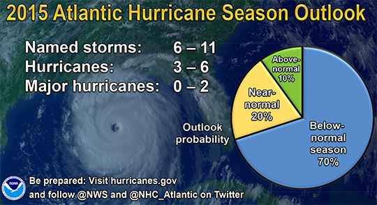 NOAA’s Climate Prediction Center says the 2015 Atlantic hurricane season will likely be below-normal, but that’s no reason to believe coastal areas will have it easy.