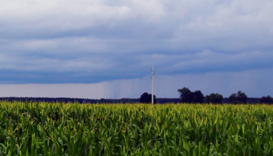 Pictured: A distant storm cloud and rain shaft as seen Monday afternoon in Bratt. NorthEscambia.com photo, click to enlarge.