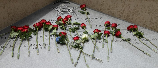 Fifteen Escambia County deputies have died in the line of duty — the first in 1923 and the most recent, Lt. George Hura, Jr., in 2004. A memorial service honoring them was held Wednesday, with roses placed on a law enforcement memorial (top photo).