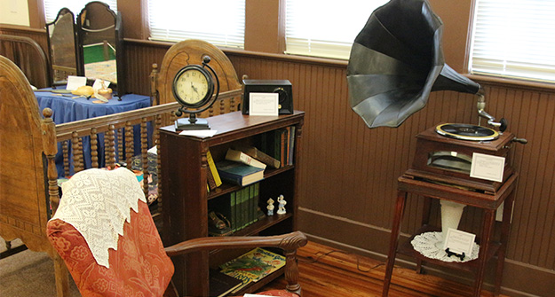 Pictured top: (L-R) Lillian King’s son Ted King, husband John King and son David King listen as Commissioner Steven Barry reads the plaque now on display at the museum in the Molino Community Complex. Pictured below: Friends, family and county officials celebrate the renaming of the museum as the Lillian F. King Museum. Pictured bottom: A few of the displays in the museum. NorthEscambia.com photos, click to enlarge.