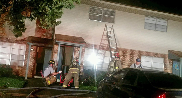 There were no major injuries reported in an apartment fire Thursday night in Cantonment. The kitchen fire was reported about 8:30 p.m. at the Grantwood Apartments in the 1700 block of Batson Lane. The fire was mostly out when the first fire units arrived on scene, and was contained to one apartment. NorthEscambia.com photos by Kristi Price, click to enlarge.