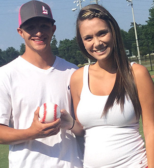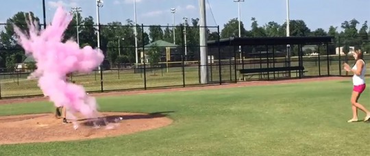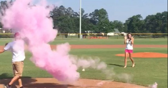 Ali and boyfriend Marshall Rolin are expecting a baby in mid-October. The couple picked a gender reveal that was a bit different than most — an “exploding” softball filled with colored chalk. Both love softball, and decided that it would be a home run way to answer the big boy or girl question.