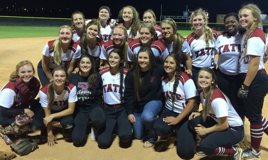 Pictured: The Tate Lady Aggies celebrate their regional championship win Friday night in Jacksonville. Photo by Mike Brennan for NorthEscambia.com, click to enlarge.