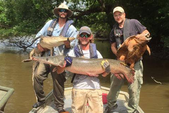 FWC freshwater fisheries researchers and herpetologists recently caught an alligator gar, alligator snapping turtle and an American alligator while conducting different studies at the same time on the Escambia River. American alligators are found in all 67 counties in Florida, but alligator gar and alligator snapping turtles are far less common.