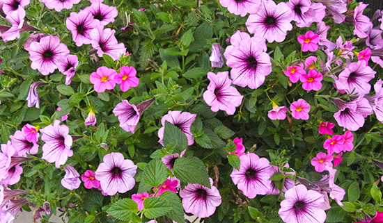 Pictured: Hanging basket petunias greet visitors to the Century Town Hall. NorthEscambia.com photos.