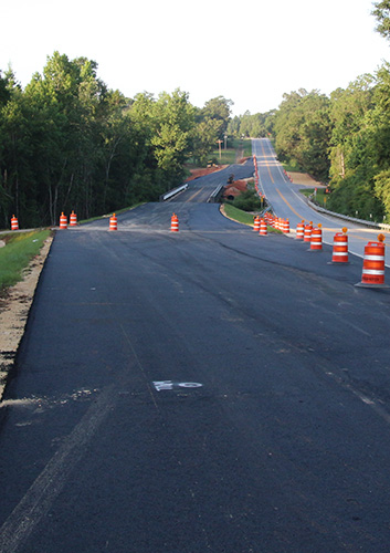 Work is nearing completion on a temporary bridge in Walnut Hill, part of the replacement of a 75-year old Highway 97 bridge over Little Pine Barren Creek in Walnut Hill.