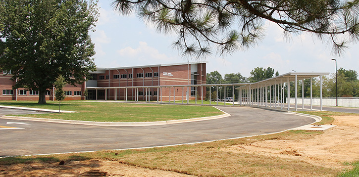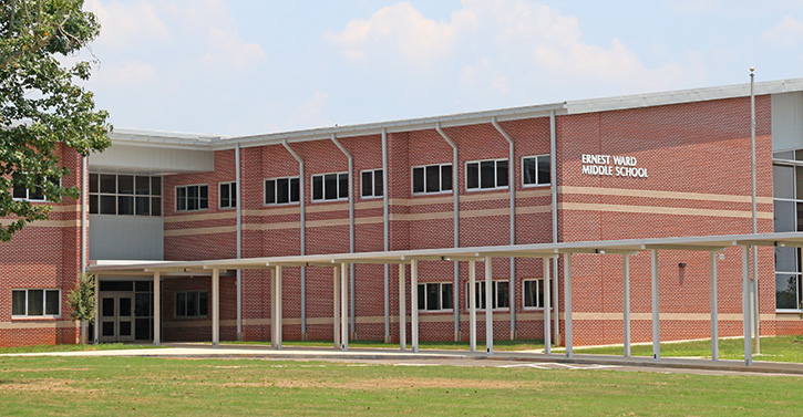 As the new Ernest Ward Middle School nears completion, and the new school year nears the first day, here’s a look at where to park and how to find the not-so-obvious front door.