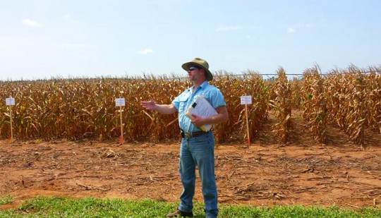 UF/IFAS West Florida Research and Education Center in Jay held their annual Field Corn Field Day Friday. Producers were able to learn about a corn variety trial and demonstration, environmentally smart nitrogen, fertilizer timing and more. They were also able to see how different varieties of corn perform side by side. Pictured: Crop systems specialist during Field Corn Field Day. Courtesy photo for NorthEscambia.com, click to enlarge.