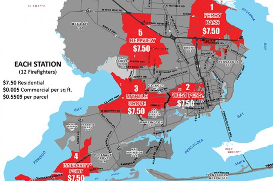 The proceeds from the extra $15 per year municipal services benefit unit assessment (MSBU) will fund 24/7 paid firefighters at the Ferry Pass and West Pensacola fire stations, with 12 firefighters assigned per station.