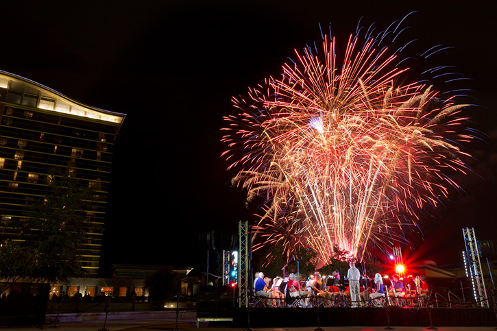 Crowds from across the area celebrated the Fourth of July Saturday night with a fireworks show and a performance by the Escambia County Community Band at the Wind Creek Hotel in Atmore.