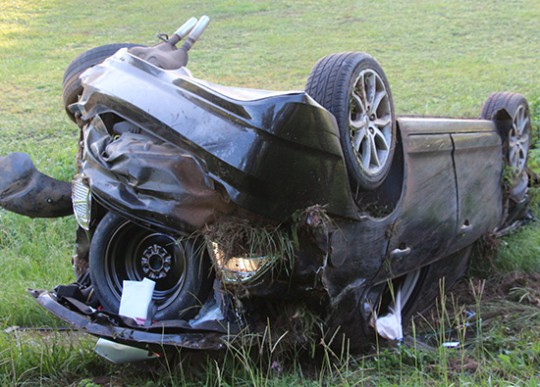 Pictured: Two people were injured in this single vehicle rollover accident on Highway 97 near Walnut Hill Saturday morning. NorthEscambia.com photos, click to enlarge.