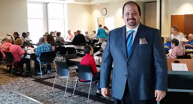 Pictured: New West Florida Library Director Todd J. Humble at a welcome breakfast with the Friends of the West Florida Public Library breakfast. Photo for NorthEscambia.com, click to enlarge.