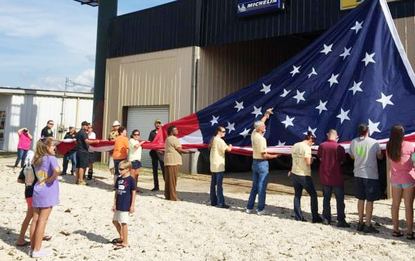 Several other businesses and individuals help make the Old Glory display possible: Jimmy White and Deep South Crane, Campbell Sand and Gravel, Steve Stanton, Jason Beasley, Frank Beasley, Pete Salazar, American Concrete and Brantley Contractors.