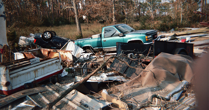 “When we were sitting in the trees, all kinds of things – two-by-fours, anything floating – got picked up and flung by the wind. To keep from getting beaten to death, I tried to get Lori and Darrell Jr. to stay as close to the water as possible. The wind was blowing so hard, my son’s tank top was ripped off. Nothing was left but the strings around his arms where he was hanging on the tree.”