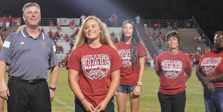 The Tate Lady Aggies won the Class 7A softball state championship last spring, and they were back in the spotlight Friday night as they received their state championship rings from Principal Rick Shackle and Escambia School Superintendent Malcolm Thomas. Photos by Jennifer Repine for NorthEscambia.com, click to enlarge.