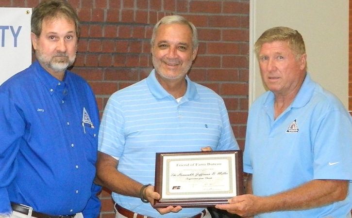 Congressman Jeff Miller received the Santa Rosa County Farm Bureau’s Friend of the Farm Bureau award at their annual meeting attended by over 250 people in Jay last week.