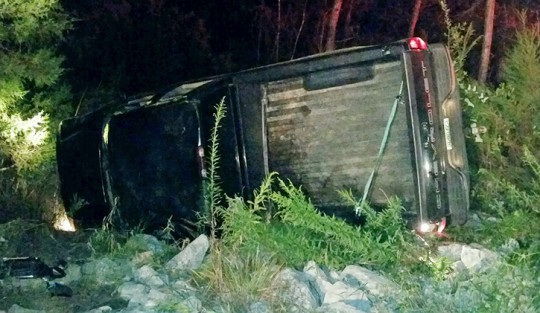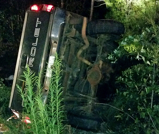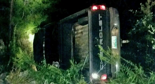 The accident occurred about 9:15 p.m. on the Alabama side of the bridge, leaving a pickup truck on its side off the roadway. One person was transported by Escambia County EMS to West Florida Hospital.