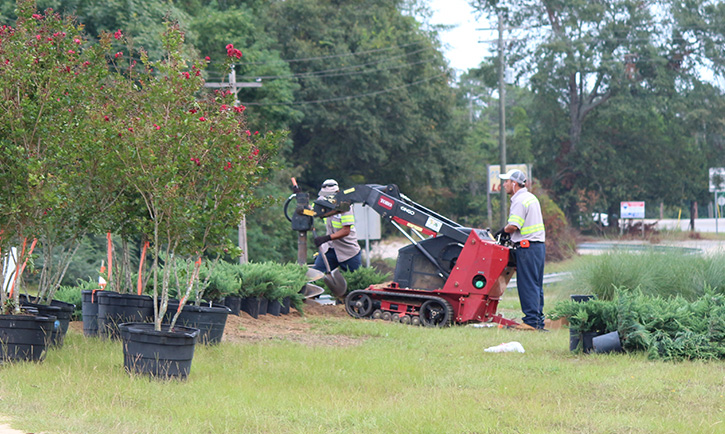 Pictured: A landscaping project got underway Tuesday morning at the Alabama/Florida state line on Highway 97. NorthEscambia.com photos, click to enlarge.