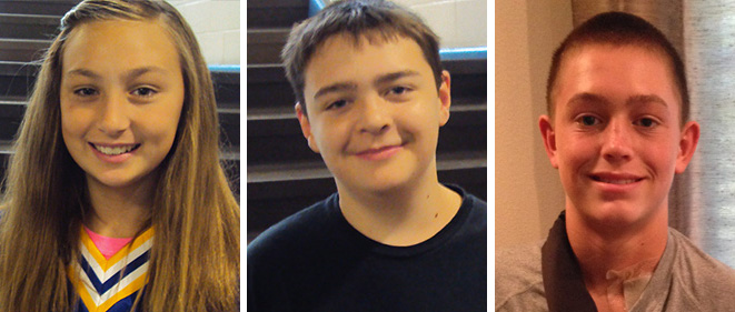 Ernest Ward Middle School has named students of the month for August. They are (L-R) Anna Adams, sixth grade; David Lamb, seventh grade; and Keaton Solmonson. Submitted photos for NorthEscambia.com, click to enlarge.