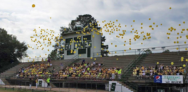 Flomaton Elementary School went gold Tuesday for childhood cancer awareness. The students released 400 yellow balloons from the high school’s football stadium.