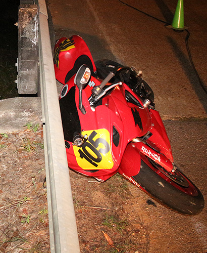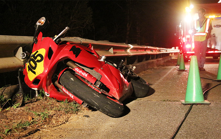 The accident was reported about 9 p.m. on County Road 99 about a mile north of Crabtree Church Road in a remote area outside Molino. It appeared the motorcyclist was southbound on Highway 99 when he hit a bridge guardrail and was ejected from the motorcycle over the guardrail and onto the creek bank below. The Suzuki sports bike came to rest on the bridge against a guardrail.