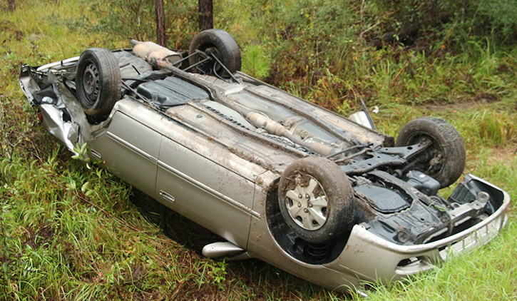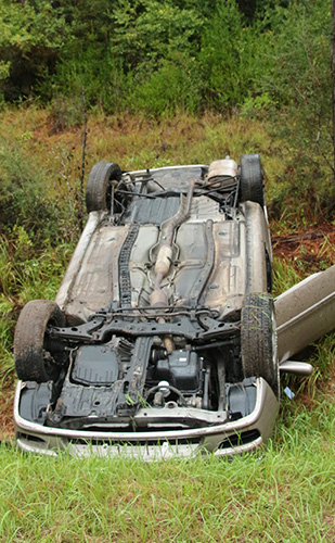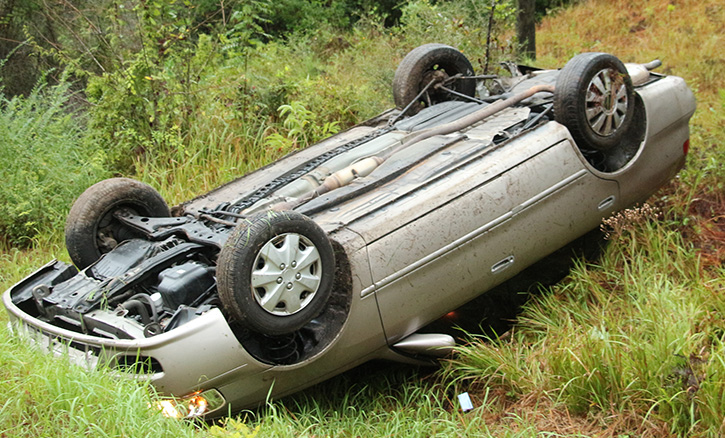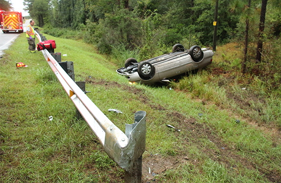 The accident was reported just after 8 a.m. on County Road 99 about a mile north of Crabtree Church Road in a remote area outside Molino. The driver was apparently northbound on Highway 99 when he lost control just past a curve, ran off the roadway, struck a guardrail on a bridge approach and overturned into a ditch.
