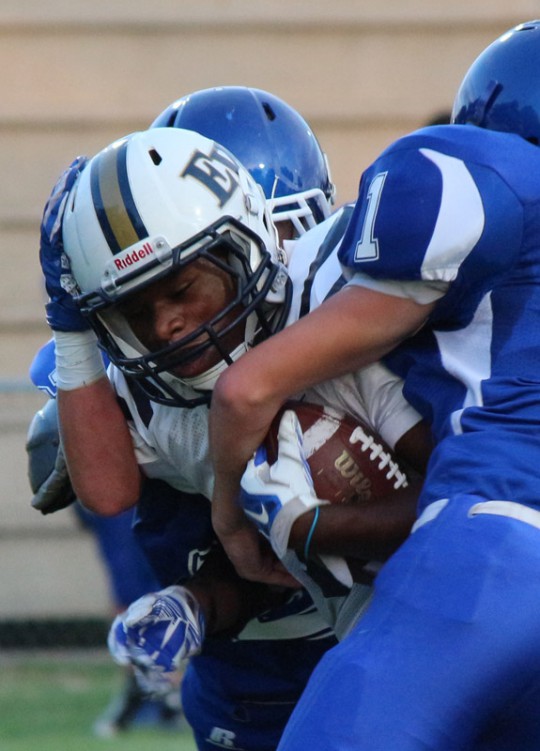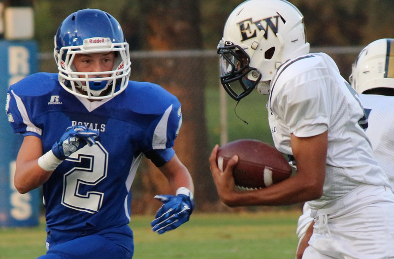 The Ernest Ward Eagles defeated Jay 22-20 at Merle V. North Stadium in Jay, coming from behind in the final seconds of play.