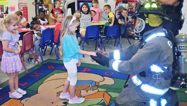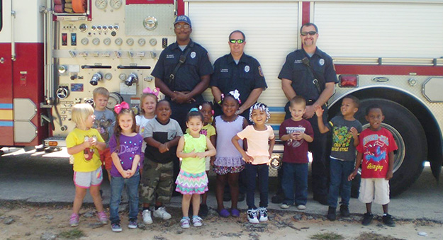 The crew of Engine 519 from the Century Station of Escambia Fire Rescue recently stopped by the Camp Fire Century Youth Learning Center. The children learned about fire safety, what to do if there is a fire at their home, and what a fireman looks like in full gear. They also had the chance to get up close with a fire truck and sit inside. Photos for NorthEscambia.com, click to enlarge.