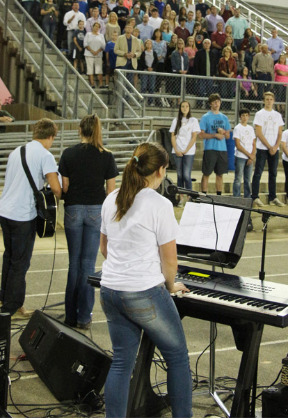 The Northview High School Fellowship of Christian Athletes (FCA) sponsored a student led worship event “Fields of Faith” Wednesday night in the Tommy Weaver Memorial Stadium.