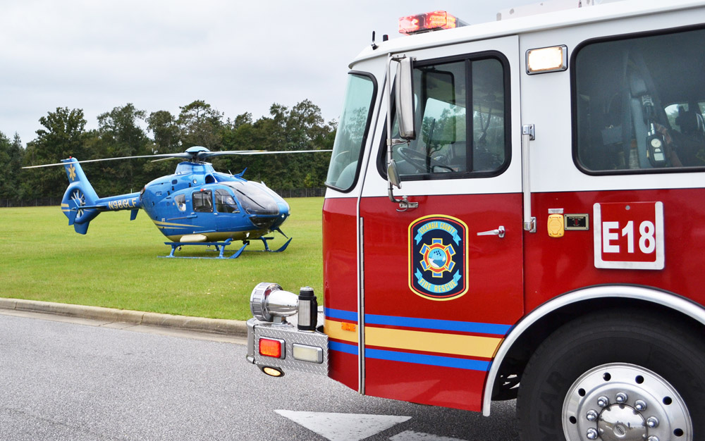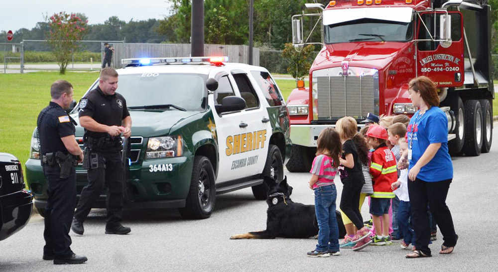 The event includes personnel and equipment from Escambia County EMS, the Escambia County Sheriff’s Office K-9 Unit, the Pensacola Police Department, the Molino Station of Escambia Fire Rescue, LifeFlight, and J. Miller Construction Company.
