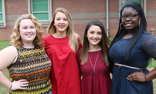 Pictured: The 2015 Northview High School Homecoming Court – Morgan Myrick, junior; Brittanie McClemore, junior; Autumn Albritton, junor; Amber Freeman, senior; Celeste North, sophomore; Savanna Roux, senior; Anna Nelson, sophomore; Jadlyn Agerton, senior; Jerni Crabtree, sophomore; Danielle Robinson, senior; Gabrielle Kline, freshman; Madison Sherouse, freshman; and Ashtyn Carnley, freshman. Not pictured: Jessica Amerson, senior. Pictured below: Seniors Amber Freeman, Savannah Roux, Jadlyn Agerton and Danielle Robinson. NorthEscambia.com photos, click to enlarge.