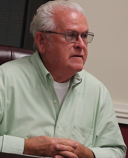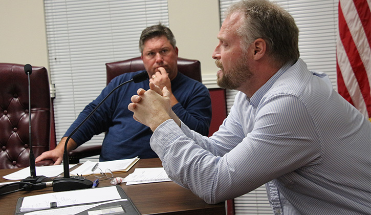 Pictured top: Century council member Ben Boutwell (background) listens at Dr. Christan Bachman addresses the Century Town Council Monday night. Pictured inset: Mayor Freddie McCall. NorthEscambia.com photos, click to enlarge.