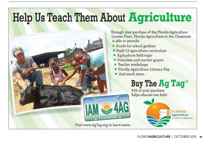 The UF/IFAS photo was used in a Florida Agriculture ad for the “Ag Tag”, the proceeds of which benefit agricultural education in Florida. The ad is in the October issue of Florida Agriculture, a statewide publication reaching 147,000 families.