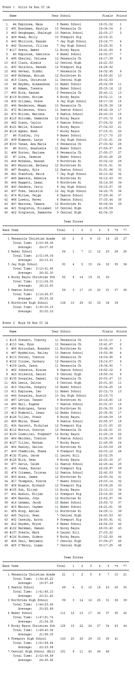 Cross country runners from Northview and Jay qualified recently to for Class 1A FHSAA Regional Championships.