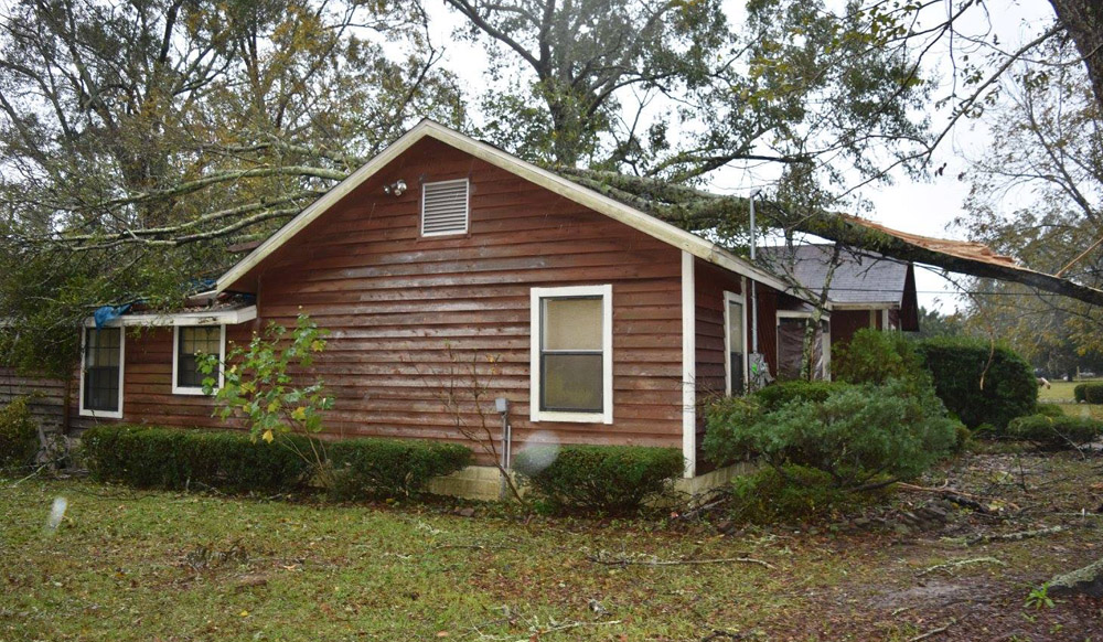 A Cantonment home was damaged as a line of thunderstorms moved through Escambia County Wednesday afternoon when a large limb from oak tree came crashing down on the roof, and officials say a tornado was not to blame.