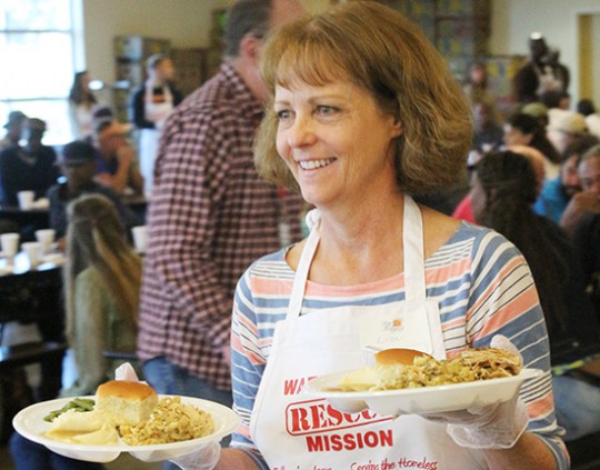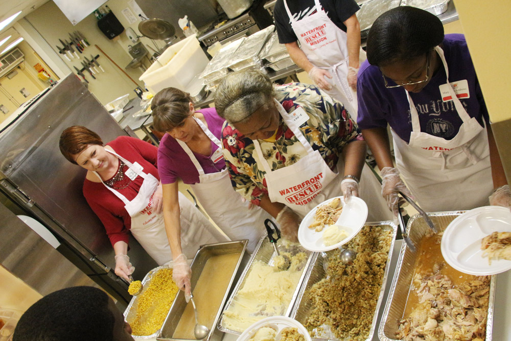 About 160 volunteers spent their Thanksgiving working to feed the less fortunate at the Waterfront Rescue Mission. Turkey, dressing, gravy — all the fixings and dessert were served to about 1,000 people in need.